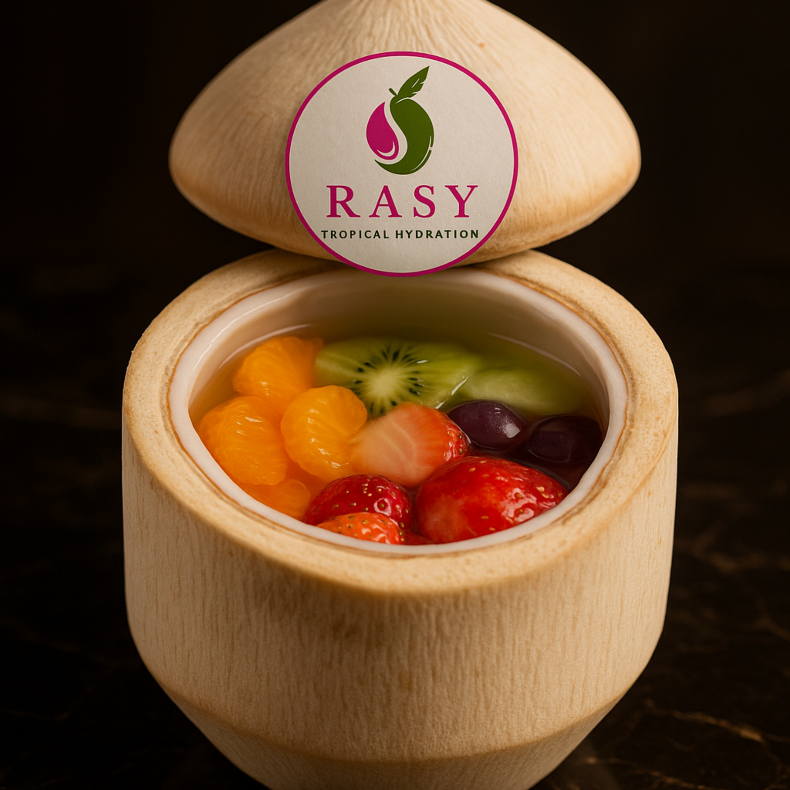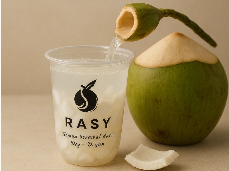 Signature drink kami, RASY – Tropical Hydration, inovasi minuman kelapa muda dengan cita rasa modern yang tetap menjaga keaslian kesegaran alami.